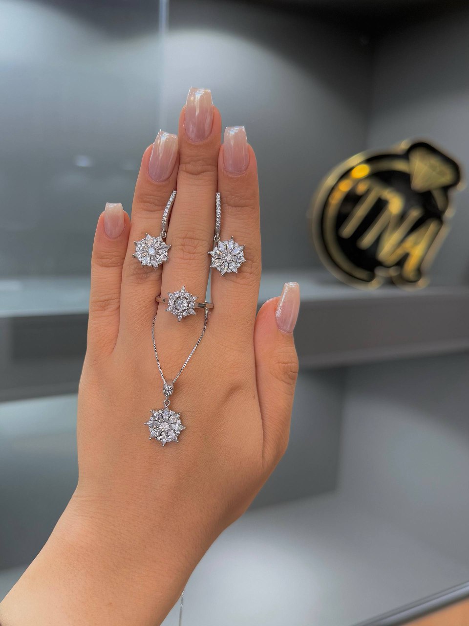 🔎 نقد و بررسی نیمست نقره طرح جواهری (گردنبند، گوشواره و انگشتر)