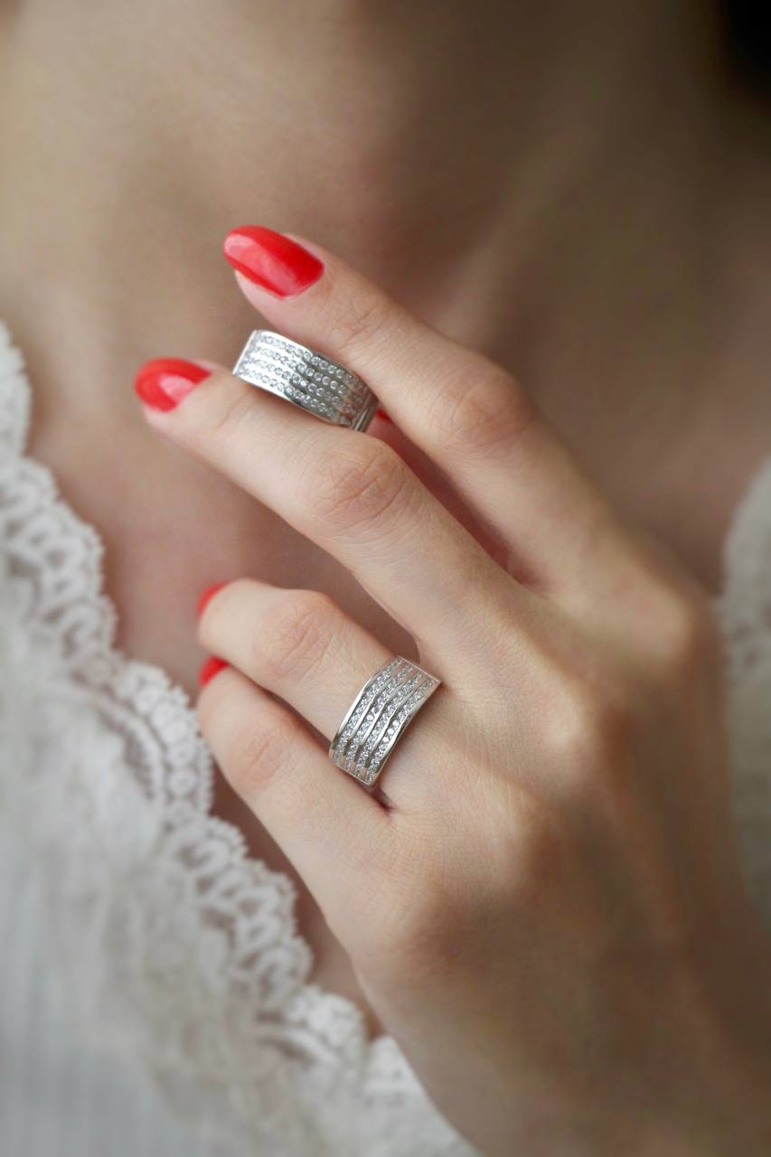 نقره عیار ۹۲۵: این حلقهها از نقره با خلوص ۹۲.۵٪ ساخته شدهاند که بهترین و رایجترین استاندارد جهانی برای ساخت جواهرات نقره است. این مقدار خلوص باعث میشود حلقه علاوه بر درخشندگی، مقاومت بالایی در برابر تغییر رنگ داشته باشد.