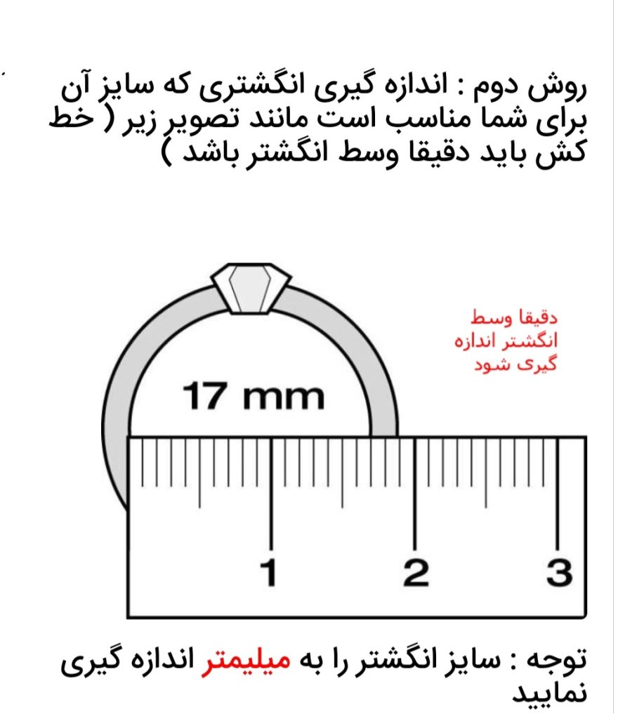 با خط کش قطر افقی انگشتر را داخل به داخل اندازه بگیرید