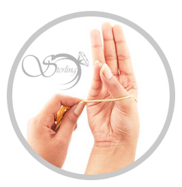 الف) ابتدا نوک انگشت شصت و انگشت کوچک را مطابق شکل شماره ۱ روی هم قرارداده در این حالت نخ را دور پهن ترین قسمت دست خود حلقه کرده و با خودکار علامت بزنید. ( نخ را جابجا کرده یعنی به طرفین بکشید و قطور ترین قسمت دست را برای اندازه گیری مد نظر قراد دهید.) برای اندازه گیری سایز دست بچه ها نیز به همین روش عمل کنید و انگشت شست کودک را بر روی دست او جمع کنید و سپس مطابق عکس پایین اقدام به اندازه گیری کنید.